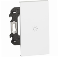 Выключатель кнопочный одноклавишный с символом "лампа" 10А автоматические клеммы 2 модуля. Цвет Белый. Bticino серия Living Now. K4702+K4005M2A+KW01M2A